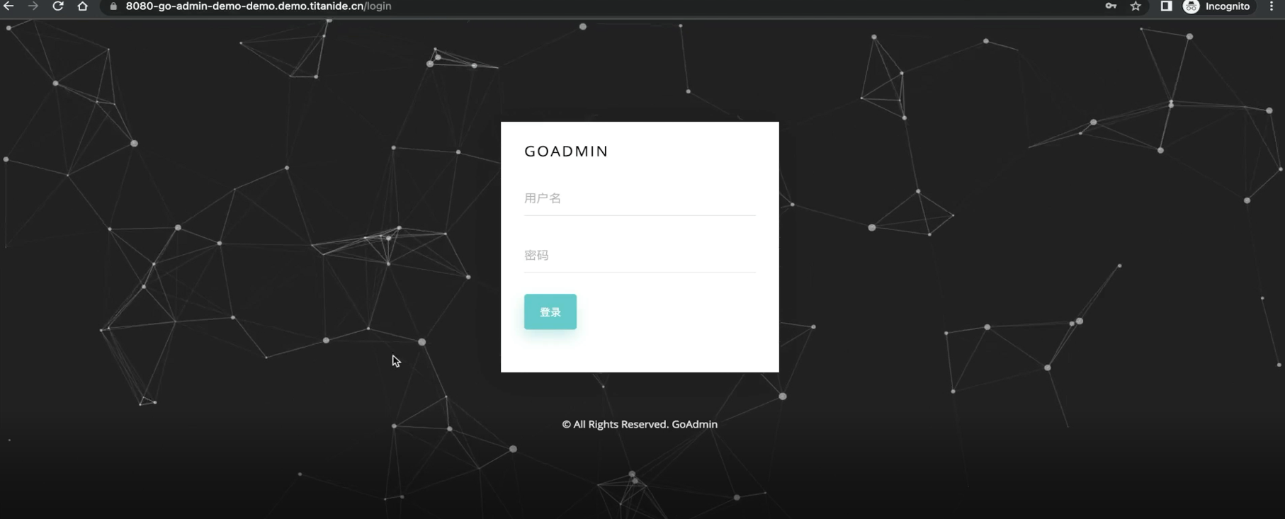 等待 1 分钟之后,一个完整的 Go Admin 开发环境已经准备就绪。