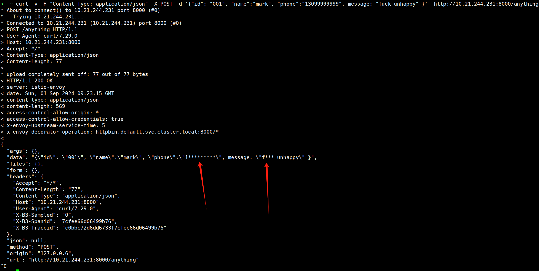 除了基本的请求/响应转换外,AI-Transformer 插件还能在业务数据脱敏方面大显身手。通过配置相应的规则,插件可以自动对返回数据中的敏感信息进行加密处理,如手机号、银行卡号等隐私数据,以及英文违禁词等,有效保护用户隐私和数据安全。这一功能在数据共享、合规性要求较高的场景中尤为重要。